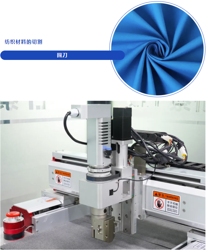 對于羊毛絨、UV布、碳纖維、橫幅、旗子布、遮光布等紡織材料,圓刀是理想的裁床刀頭選擇。蔡倫科技CLT圓刀配置80/200/250/310W等不同功率的高頻電機(jī),最高轉(zhuǎn)速可達(dá)15000RPM,配備鎢鋼硬化刀片,通過電機(jī)帶動刀片高速旋轉(zhuǎn)運(yùn)動來切斷材料,切割速度快,干凈利落切邊好,不會出現(xiàn)毛刺現(xiàn)象,就特別適合紡織品的精細(xì)切割。