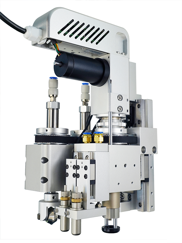 組合刀頭CLT91267集成振動刀、壓輪、斜切刀、畫筆、半切功能,滿足多種工藝的需求,提升加工效率。振動刀壓盤通過氣缸控制,氣缸桿伸出壓盤緊壓著工作臺面,氣缸桿收縮壓盤上抬。